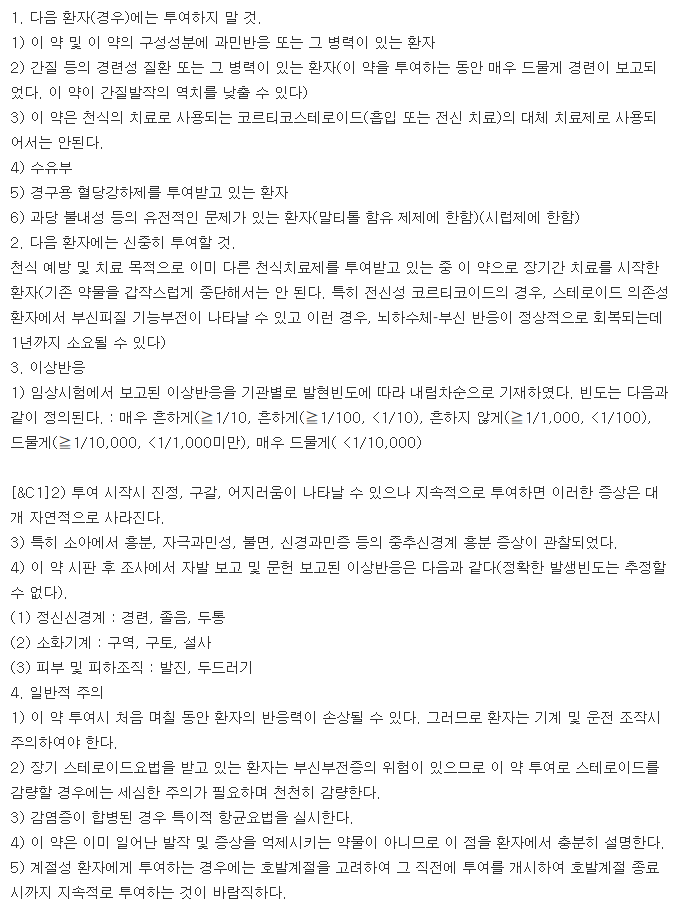 따라서, 약학정보 전문기관에 등록된 하단의 약품 주의사항을 반드시 세밀히 읽어보고 부작용이나 이상반응, 고령자나 소아, 임부나 수유부에 해당하는 경우 주의를 기울이셔야 합니다.